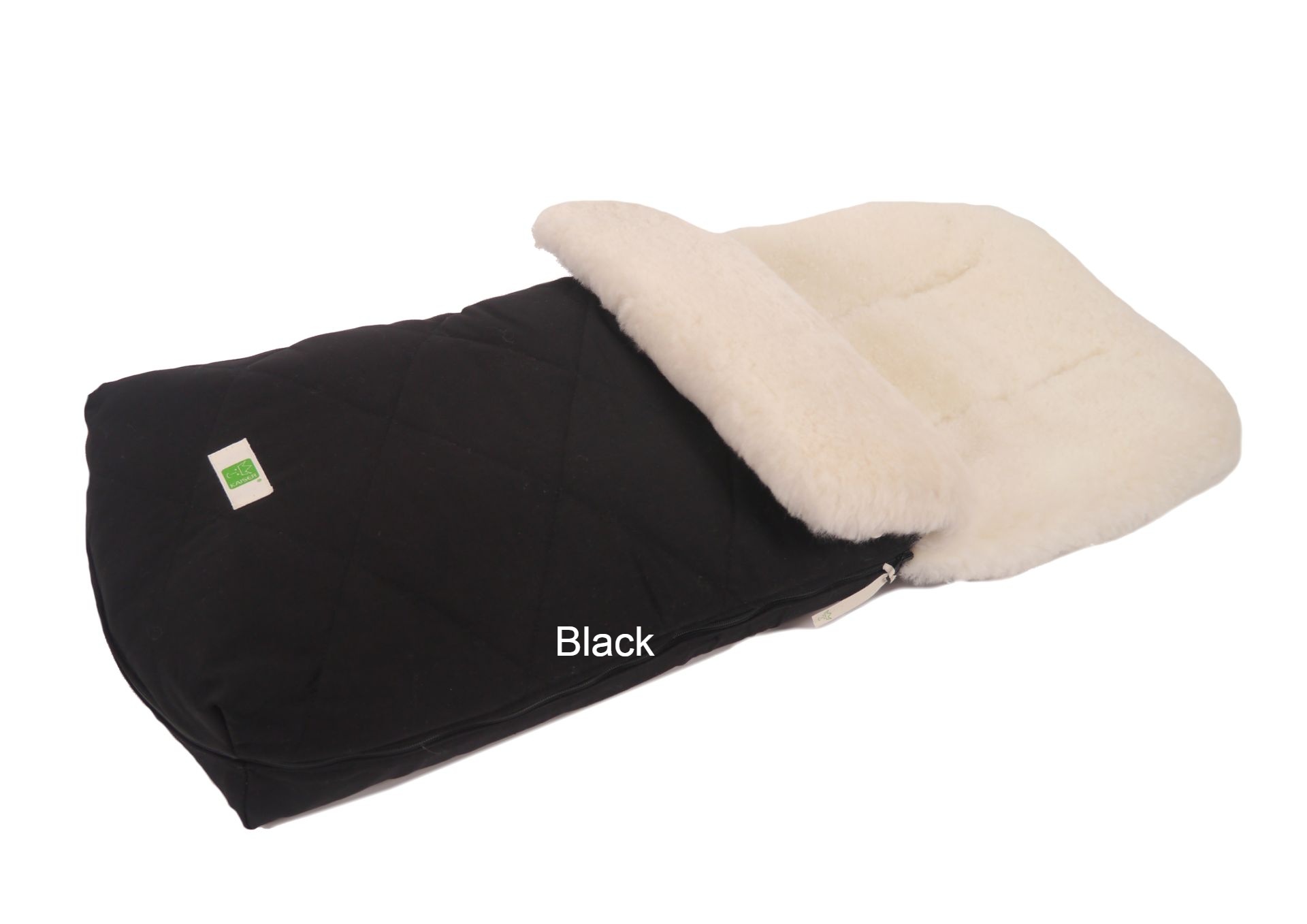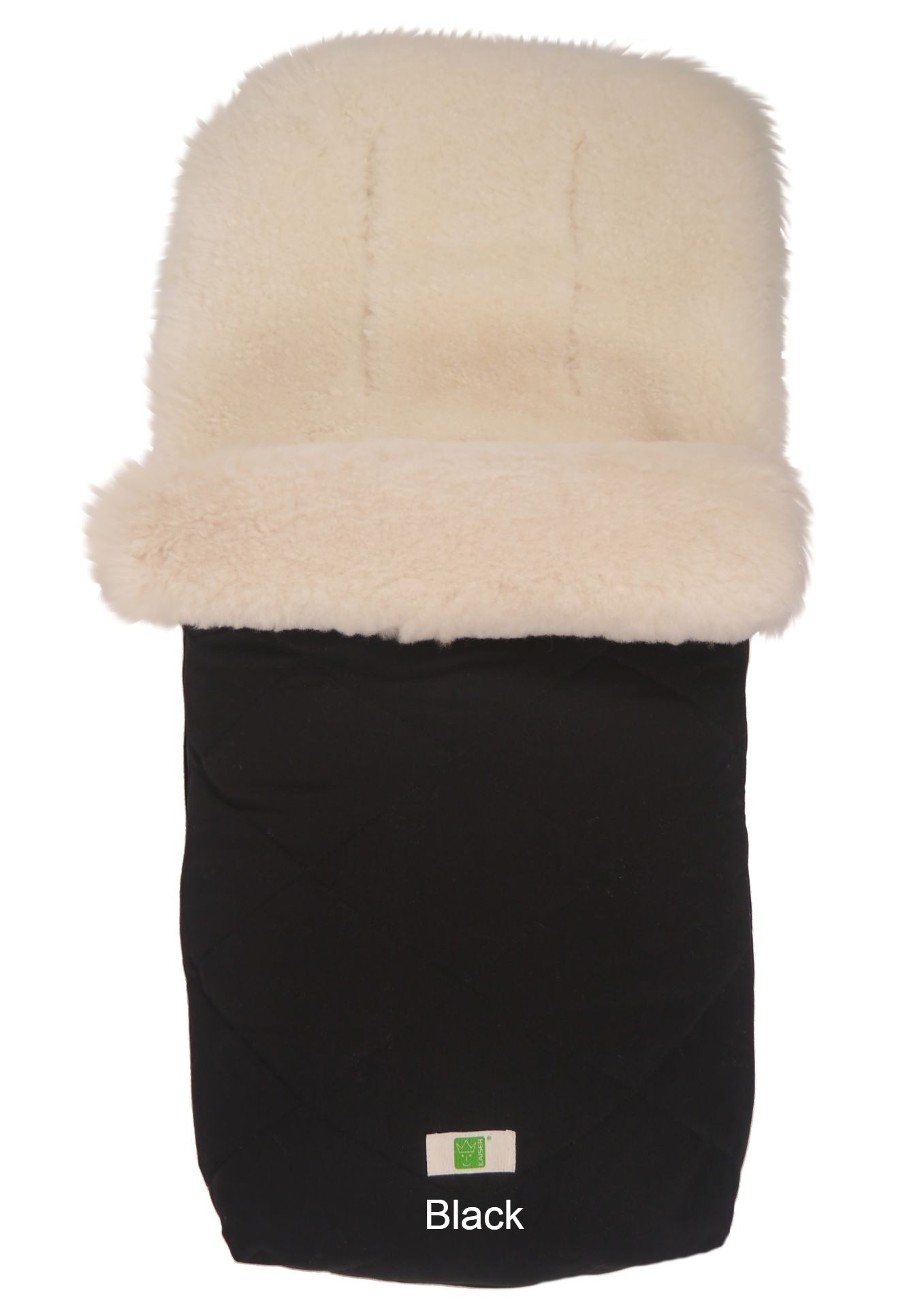 This footmuff fits perfectly on all common buggy models and thanks to its integrated harness slits you can always safely strap your child in. The Lambskin flap can be folded up and fixed with wooden toggle on the sides, so you can protect your child even better against wind. During the summer unzip the front and use it as a liner. It unzips completely and can be laid flat for use as a blanket or pad. Not water proof, use a rain cover over it when it rains.