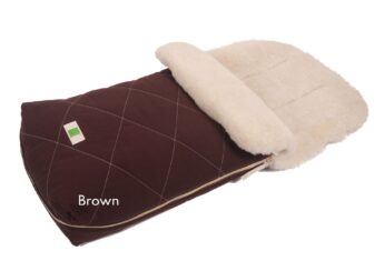 Lambskin with its softness, thermal regulation and the ability to evaporate are an ideal base for your child. The footmuff Natura organic cotton consists 100% of natural materials.